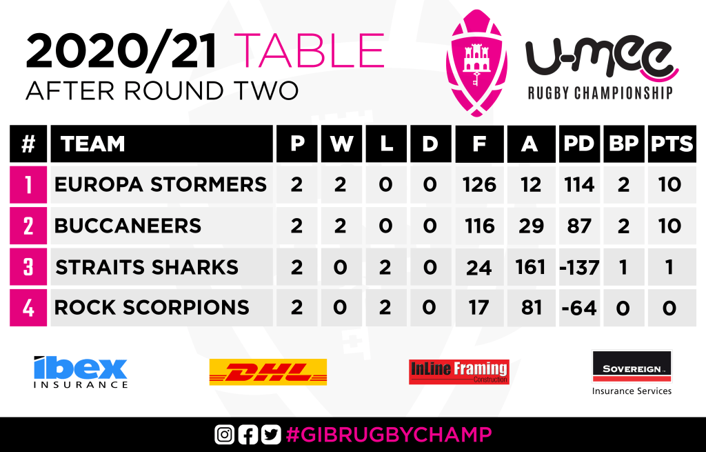 Here’s a look at the league table after two rounds of the u-mee Gibraltar Rugby Championship: